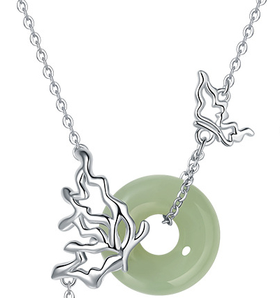 Women's Sterling Silver Butterfly Necklace Personalized Cold Style Hetian Jade Necklace