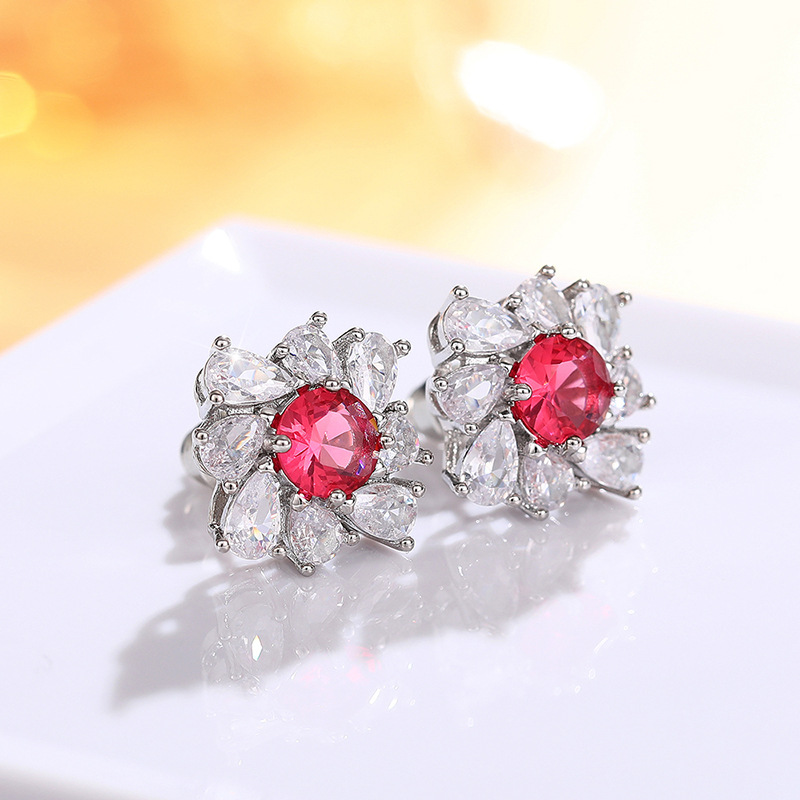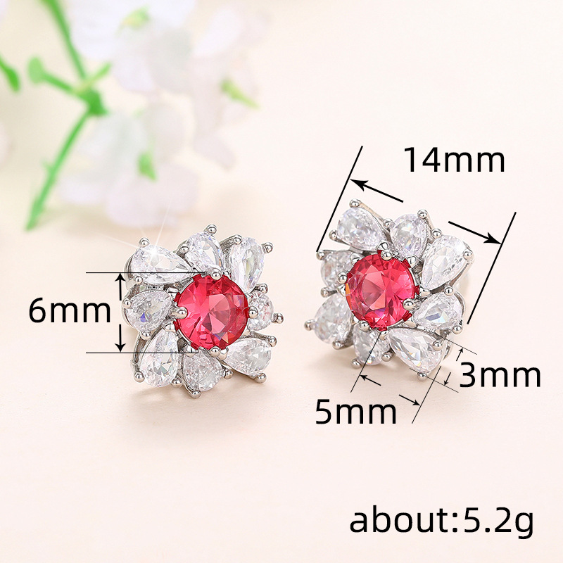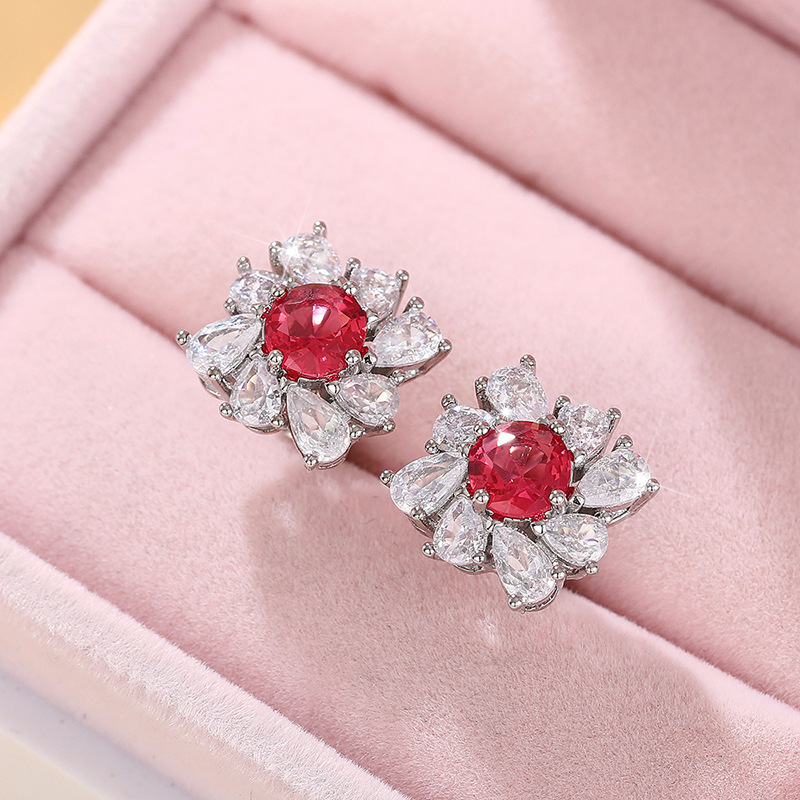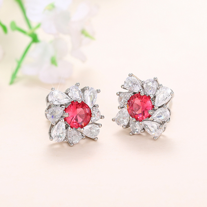 Women's Red Diamond Pear-shaped Water Drop Flower Earrings